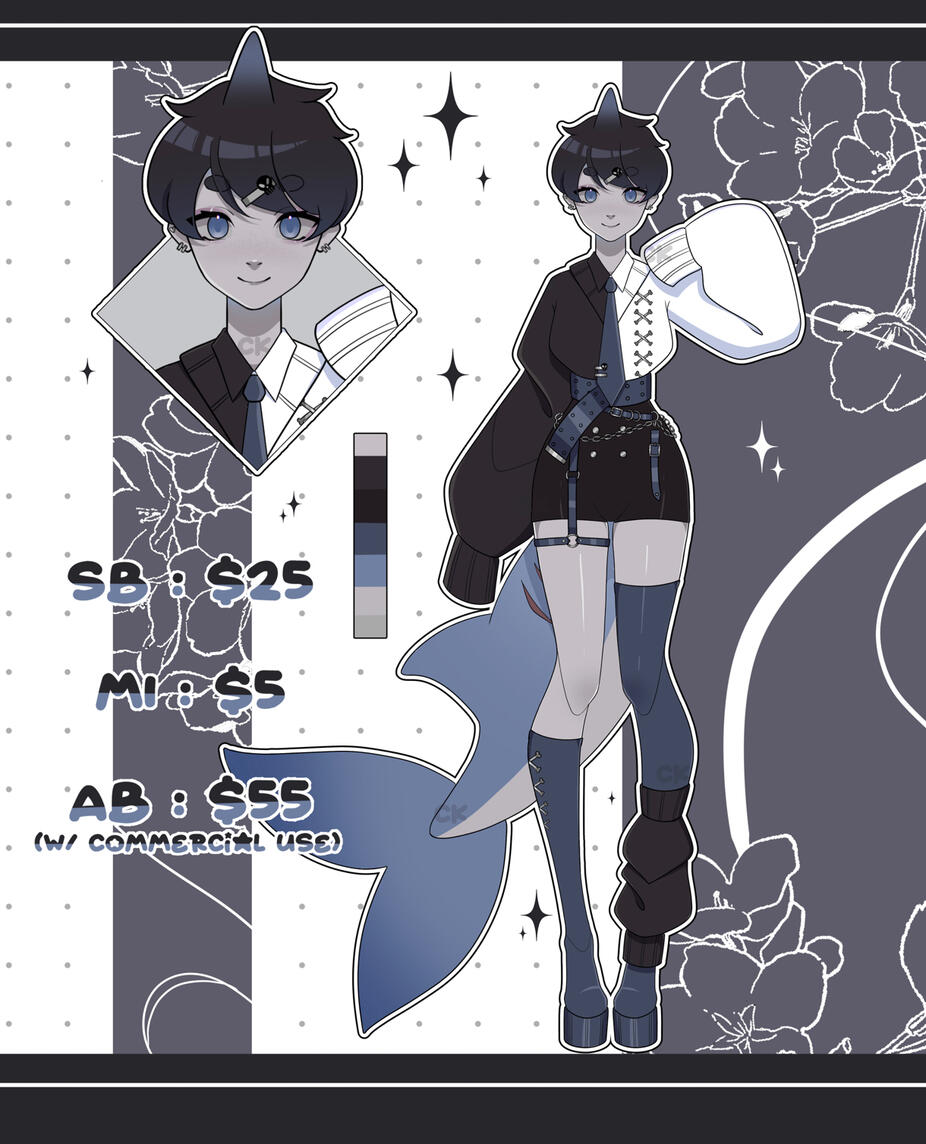 (Commercial use : 2x the given)Ref.Sheet 1 : $20 (Front & Back + color palette) — TAT : 1 weekRef.Sheet 2 : $50 (Front & back + color palette + Extra art of choice : Headshot | Bust | halfbody ) — TAT : 1-2 weeksRef.Sheet 3 : $100 (Front, back, and side + color palette + Extra art of choice : Headshot | Bust | halfbody | Fullbody) + Commercial use — TAT : 2-3 weeksI also offer :Re-Design / Customs : +$20